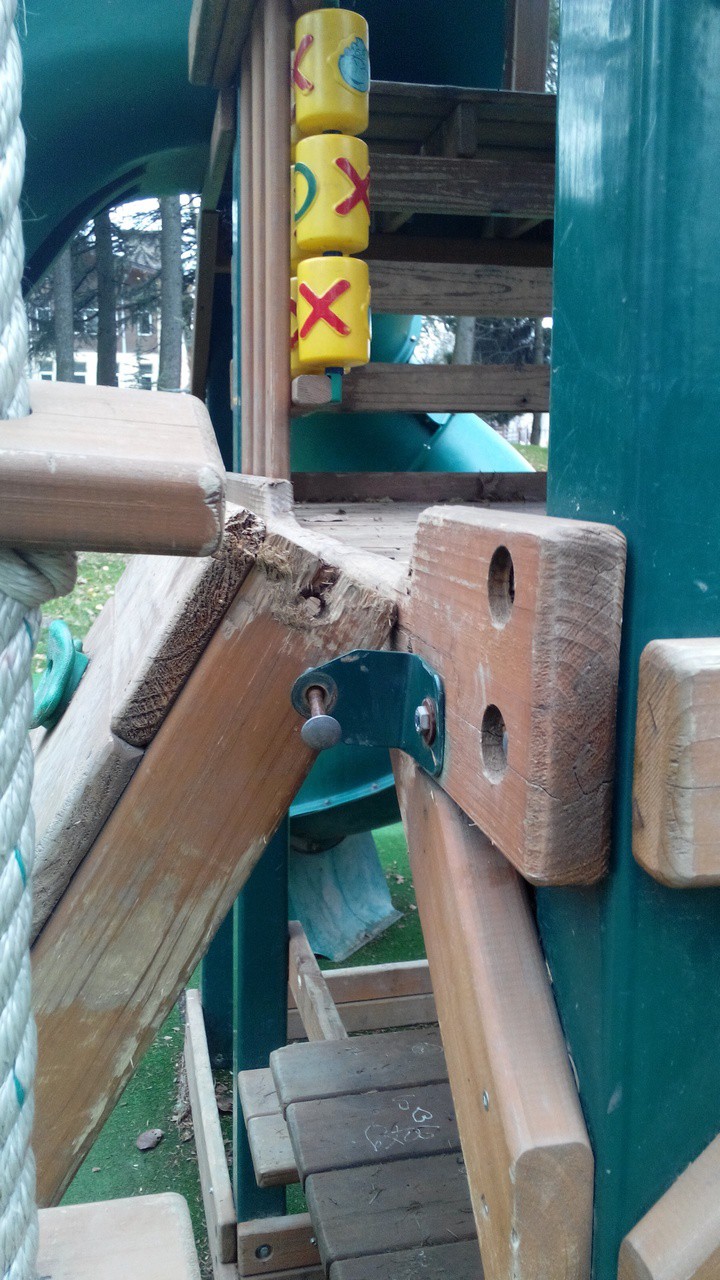 Нужны:толстая веревка или цепь для качелек, шуруповерт по дереву, планки деревянные и болты с гайками, и самое главное — желание людей все исправить.