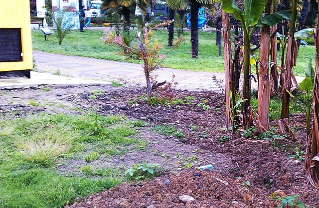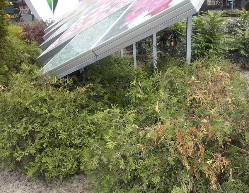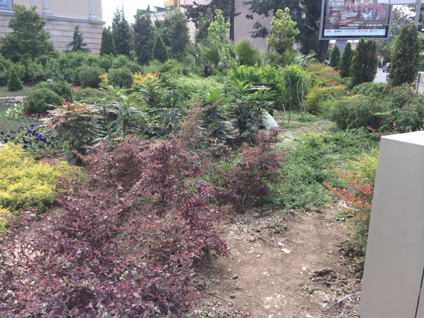 Кусты, рядом с которыми стояли картинки — засохли… вовремя убрали, иначе всё было гораздо плачевнее…