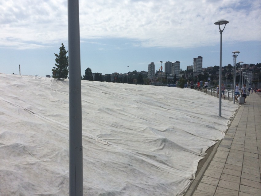 Сегодня в очередной раз проходя по улице Навагинской увидели всю ту же картину-иссыхающие от жары пальмы с не обрезанными ветками, газоны в сорняках, я вот одного не пойму-подсветку в брусчатку вмонтировать не забыли, а вот элементарно понаставить крутящихся леек-забыли…