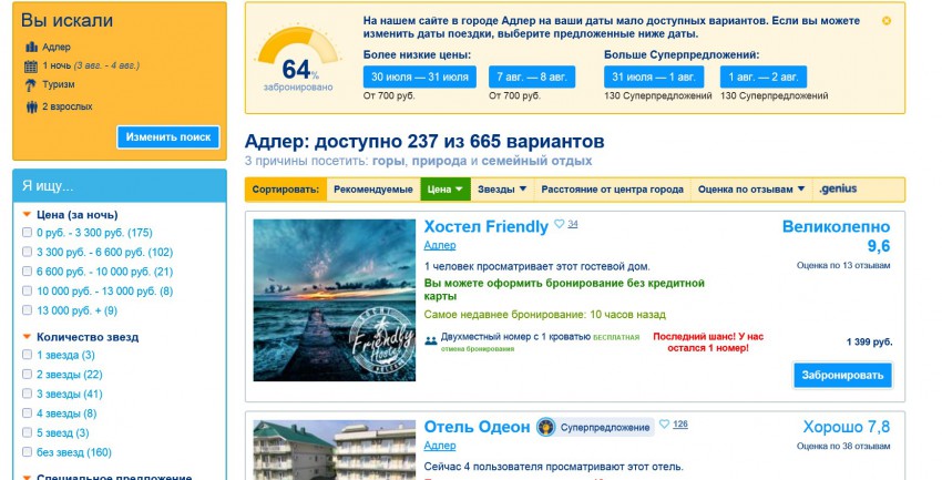 Тот же букинг показывает что Адлер август занят на 64%…