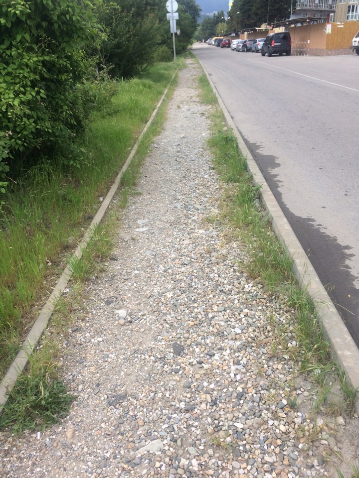 Тротуар сделан, даже подложка отсыпана под плитку, поэтому я и сделала вывод что по планам там должна была быть и плитка. Полагаю — город бросил на полдороги…