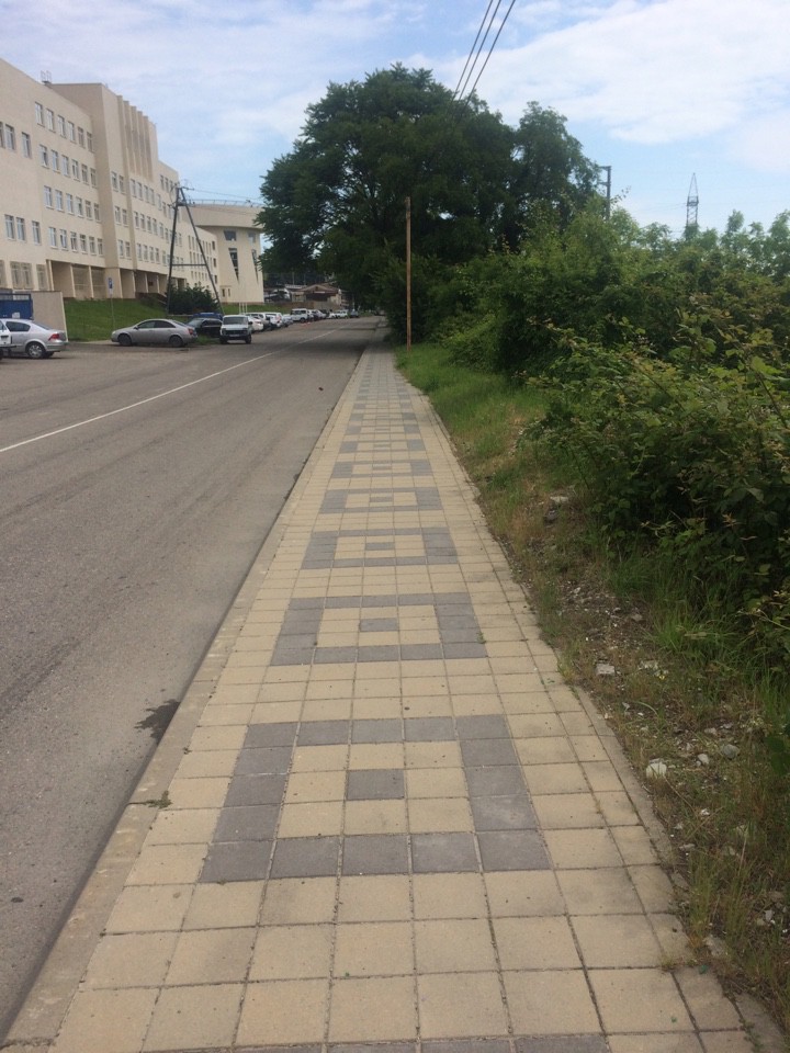 На улице Конституции у нового здания ГИБДД и строящегося ЖК 123… есть примечательный тротуар, который заканчивается примерно посередине (от Краснодарского кольца до Вертодрома)…