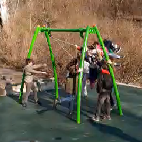 Сначала эта качеля просто шаталась, после того, как школьники старших классов катались на ней по 8-10 человек одновременно. Затем качеля шаталась уже очень сильно и ее замотали лентами. Но кого это остановит и как починит саму качелю? Теперь вот совсем сломали.