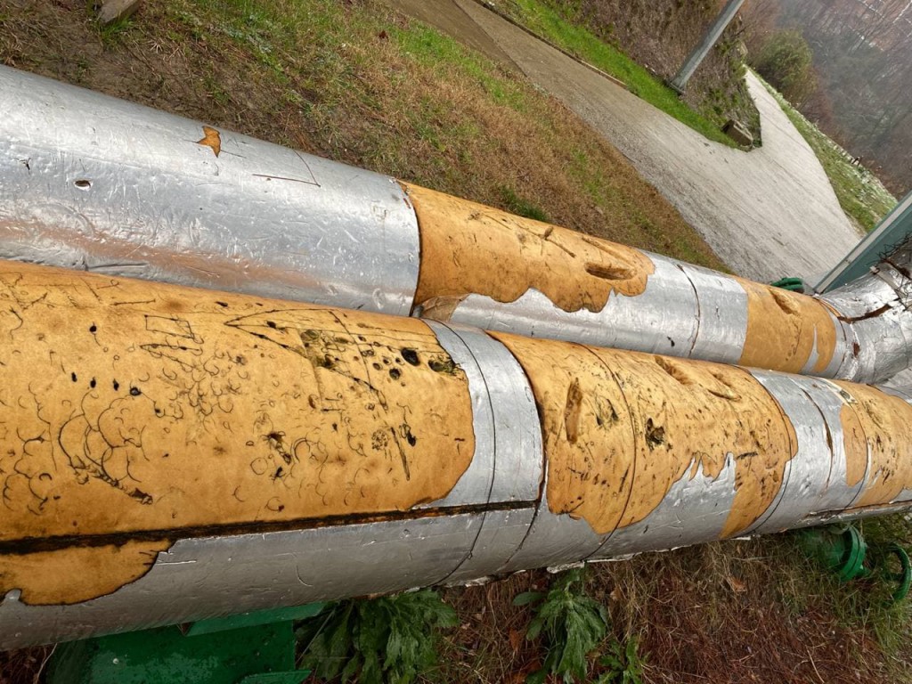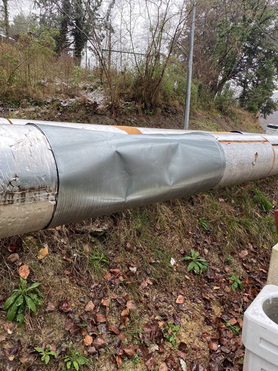 Так же вандалы обдирают утеплитель с магистрального водопровода: