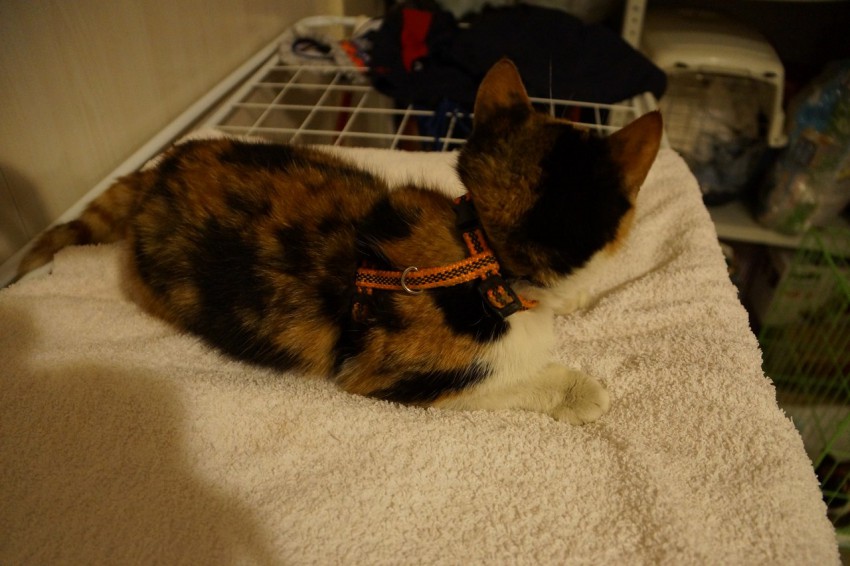Найден трехцветный котенок подросток в шлейке в центре Сочи!