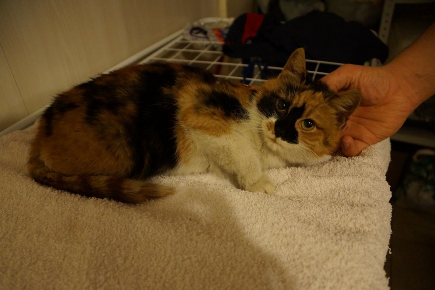 На набережной реки Сочи на ул. Чайковского на днях подобрали котенка подростка в ШЛЕЙКЕ, сидела девчушка на обочине дороги и мяукала бегая за прохожими под дождем… Скорее всего это потеряшка или брошенка т.к очень контактная с людьми, урчит благодарно от малейшего прикосновения, на собак шипит и реагирует недружелюбно, полностью здорова, от паразитов ее уже обработала от всех! Срочно ищем дом и хозяев или новых или старых для этой 3х цветной красотки ласковой 6ти месячной! Тел. 8-928-245-38-29