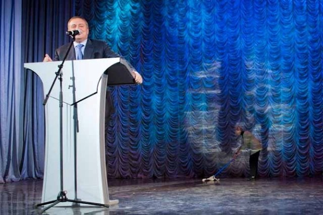 4. Во время речи Пахомова А. Н. уборщица решила поддержать порядок на сцене
