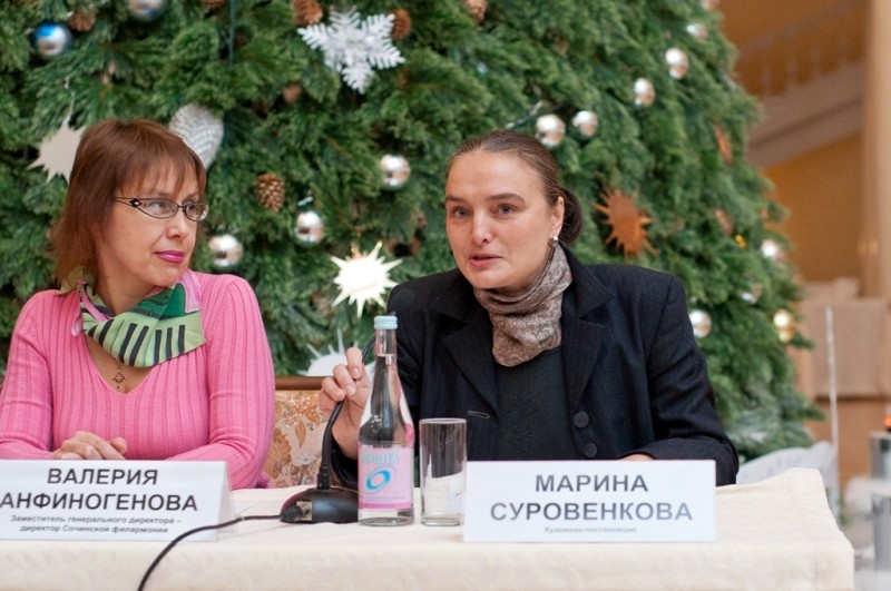 Планами на будующий год делились Владимир Мишарин- генеральный директор СКФО; Валерия Анфиногенова -заместитель генерального директора, директор Сочинской филармонии; Любовь Савченко — директор ресторана «Пяти свечей» Зимнего театра, Марина Суровенкова — главный художник СКФО, Татьяна Остудина — заслуженная артистка России, солистка Сочинской филармонии.