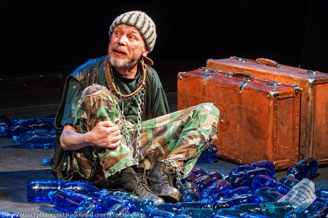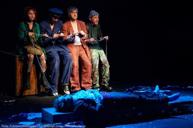 Герои спектакля бродяги, которых занесло на Богом забытую станцию и которые на протяжении всего времени мечтают выбраться из этого забытого места, в те места, где бы они стали достойными гражданами общества.