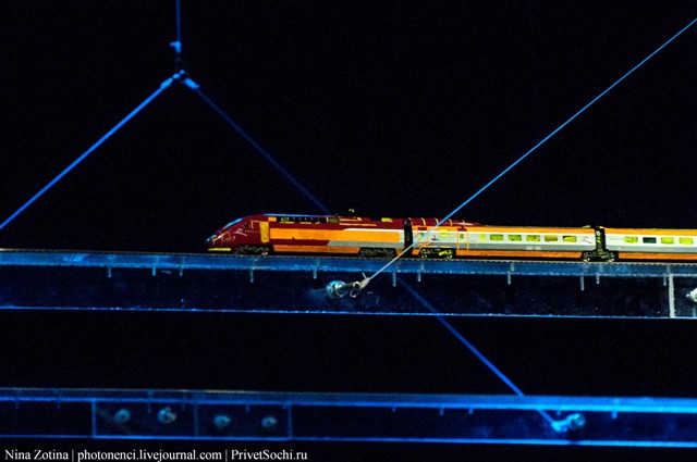 6. Сверху над артистами была «возведена» мини железная дорога, по которой ездили поезда: