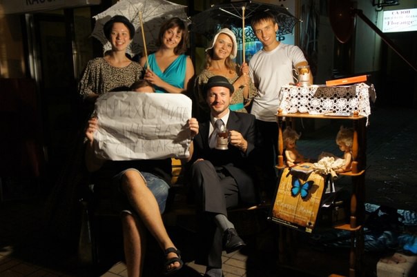 Перфоманс у кассы театра (жаль, не были свидетелями)