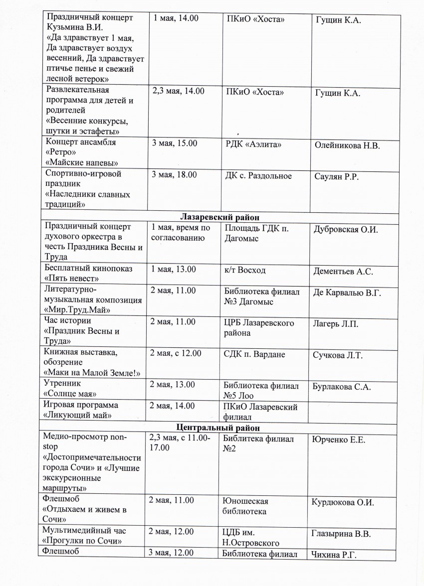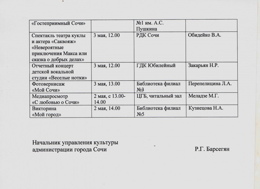 Все общегородские мероприятия предлагаю перенести в Адлерский район. Адлерский район принимает Олимпиаду, поэтому и общегородские мероприятия надо проводить там.
