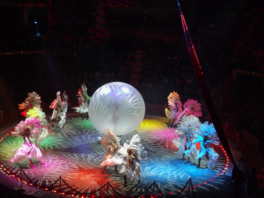 Но вот гаснет свет и… Это потрясающее зрелище возможностей человеческого тела! Каждый раз циркачи придумывают что-то новое. В этот раз произвели впечатление жонглер шляпами, как обычно, эквилибристы и акробаты. Смешной очень 9-месячный мишка-ДПСник — особенно когда стоял на коленях перед дамой с большим сердечком в лапах.