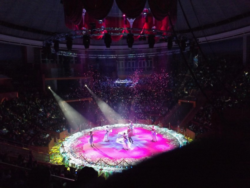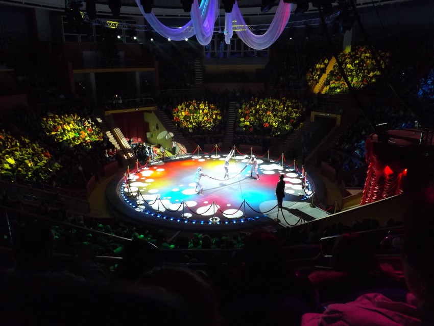 Были сегодня с малышом в цирке. Лет так с 14 цирк не любила, после того, как на глазах детей дрессировщица лупила плетью непослушных собачек на арене. Потом приходилось по работе с детьми ходить — складывалось впечатление, что «школьные» представления сделаны «на отвалите» — лишь бы провести, задешево не напрягались. Поэтому как-то к цирку было равнодушное отношение.