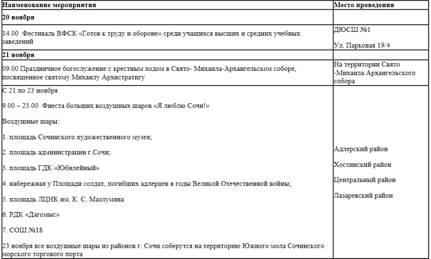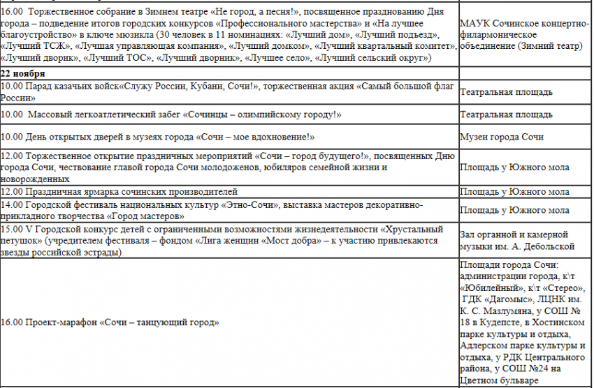 В Сочи День города — 21 ноября. В 2014 году День города Сочи — предпоследняя пятница ноября.