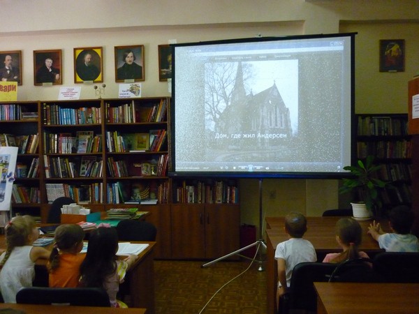 После рассказа о великом сказочнике ребята полистали его книги, посмотрели медиапрезентацию «Андерсен и его персонажи» и мультфильм «Дюймовочка».