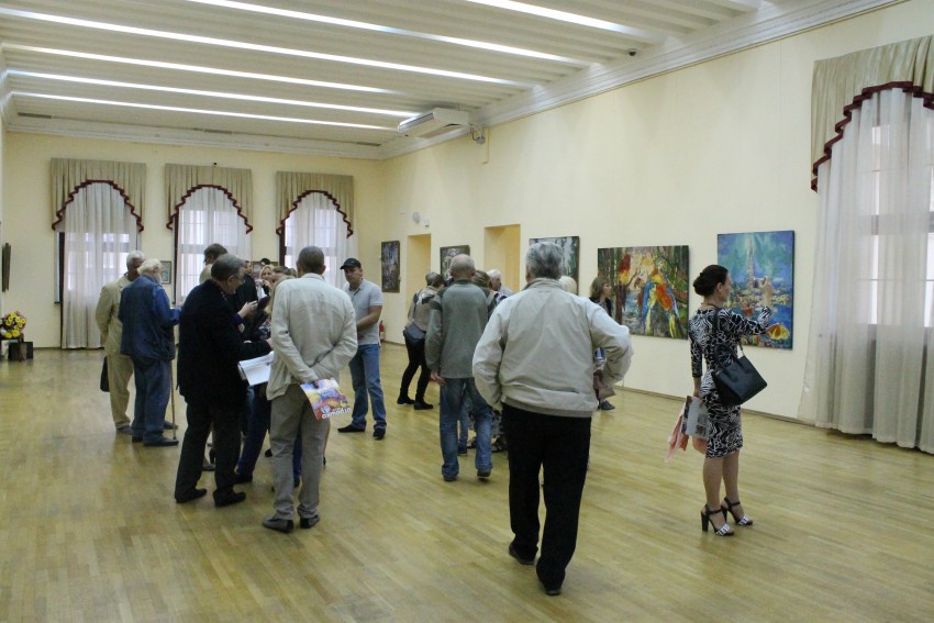 В залах – разные по степени реалистичности произведения. Крупноформатные холсты практически беспредметны, формальны. В красочности этих полотен и динамичности их фактуры дышит свобода и импровизация. «Непреднамеренность» живописи раскрепощает зрителя, приглашает погрузиться в поток цветовых впечатлений. Каждая работа дает зацепку для размышлений о ее природе, о характере, о приемах, используемых автором.