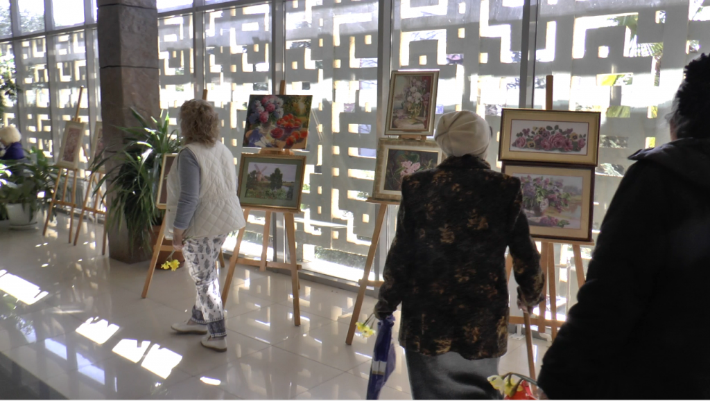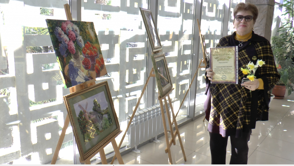 Праздничное убранство фойе дома культуры украсила замечательная выставка художественных работ известного сочинского живописца — Веры Миндалёвой.