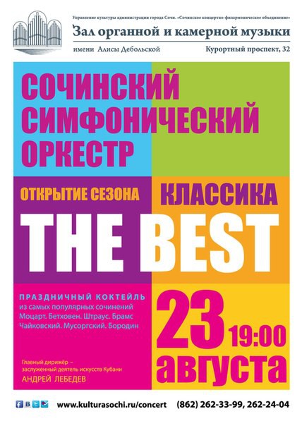 В пятницу 23 августа в 19 часов в Органном зале Сочинский симфонический оркестр открывает свой новый концертный сезон 2013/2014 гг.