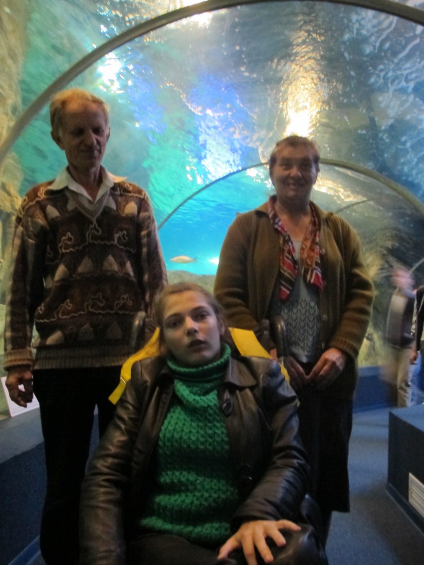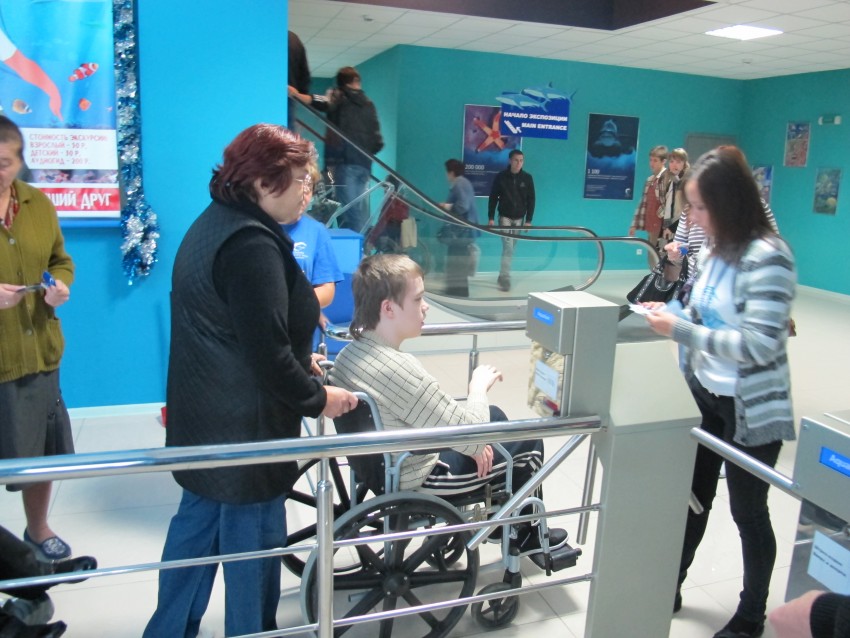 Конечно выбирали место, в котором есть все условия для посещения, Океанариум оснащен лифтами и пандусами.