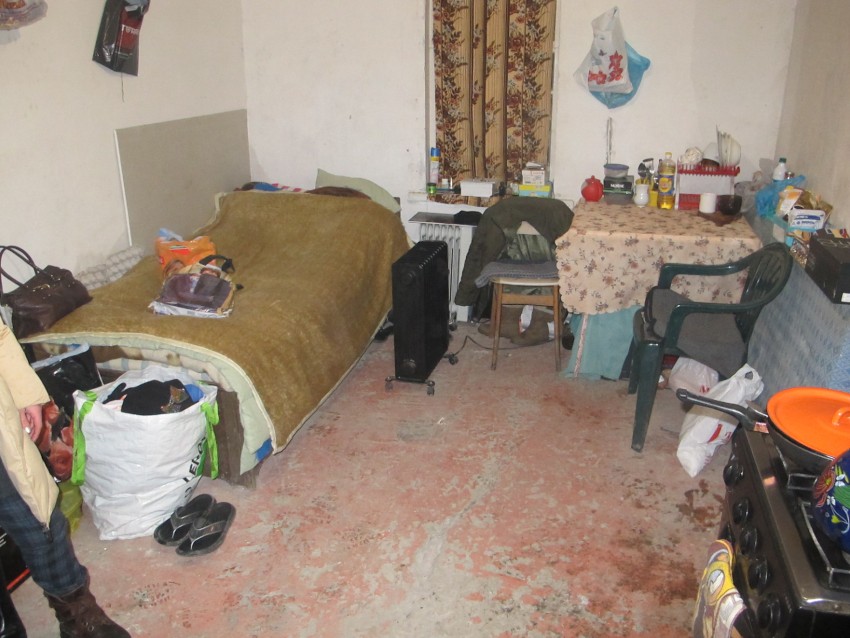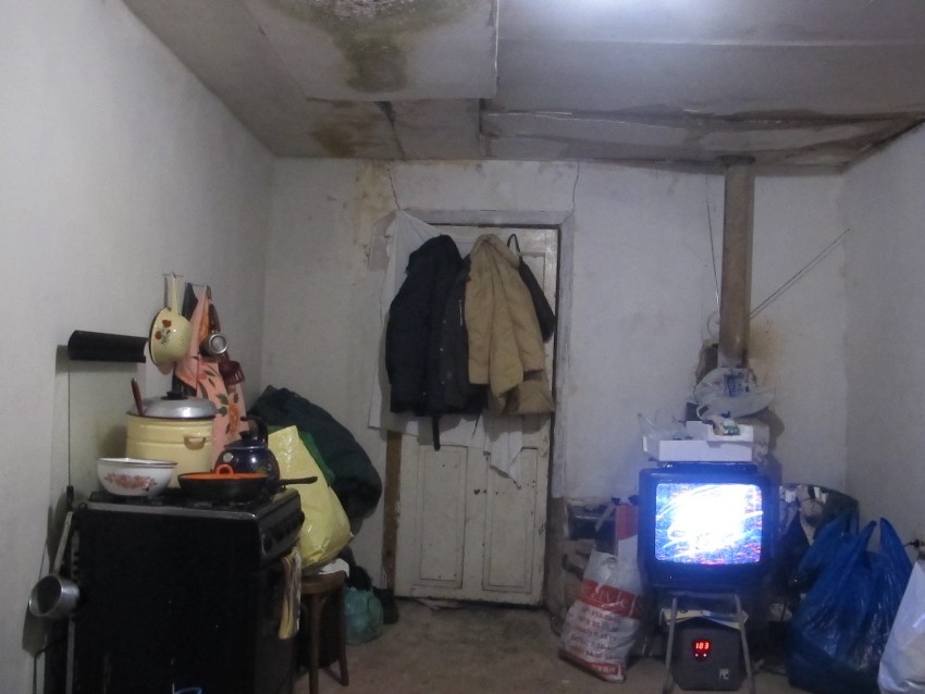 Полы бетонные, жилье не приспособленное для проживание деток. Поэтому они проживают пока у соседки.
