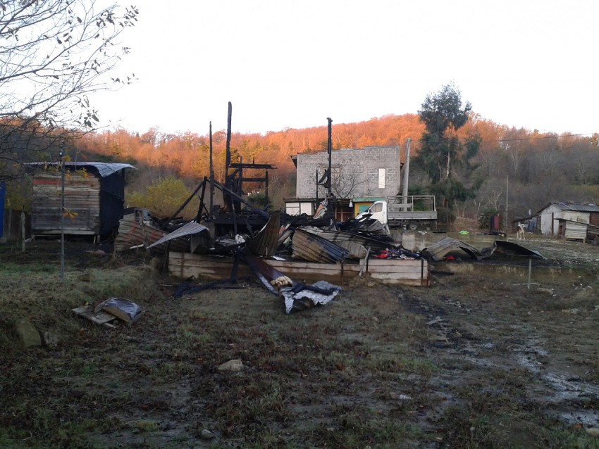 Сгорел дом, очень нужна помощь! 24 ноября 2014 г в поселке Дагомыс сгорел дом от короткого замыкания, в котором жила молодая семья с двумя детьми. Пытались тушить своими силами. Так как дом был деревянный к приезду пожарных он уже сгорел, остался только фундамент.