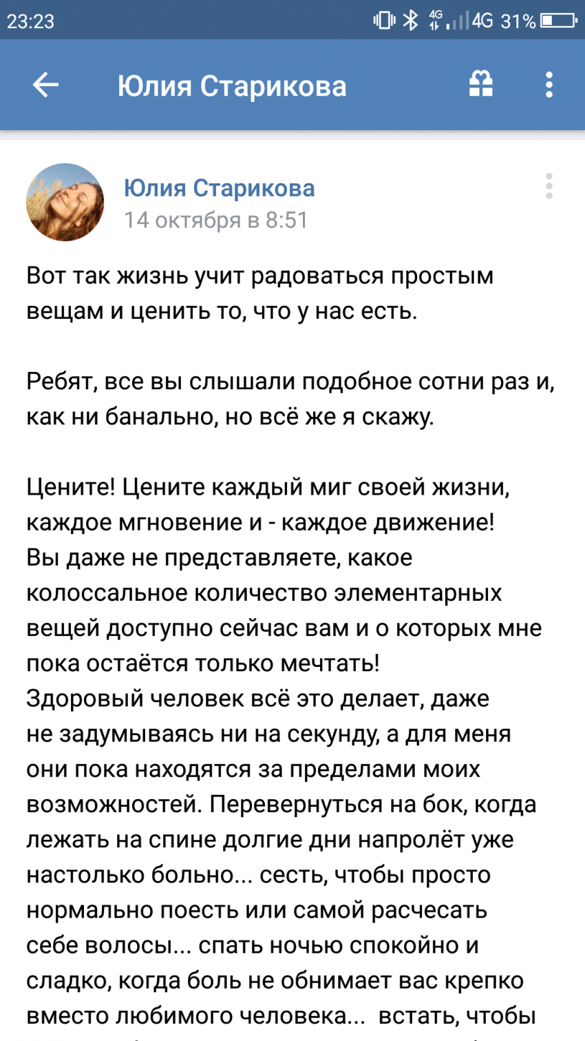 Восстановление предстоит очень долгое. Но Юля светлый человек, держится, шутит, философствует и благодарит за любую помощь.