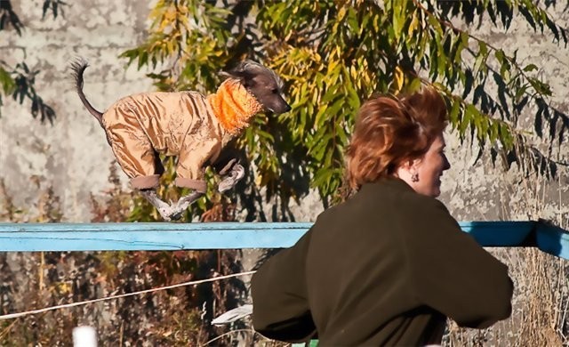 В начале осени фотографировала ее вместе с Соней (ее собачкой) в костюмах, которые она сшила полностью сама — себе и своей собаке.