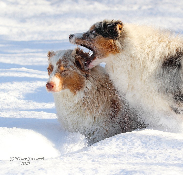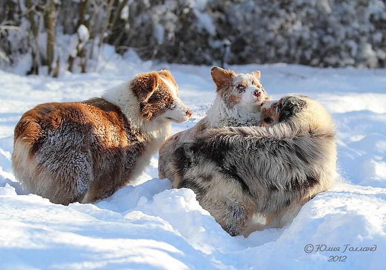 Но есть существа, которым чужды людские проблемы. Это наши собаки! Какое счастье было, моим австралийским овчаркам, скакать в сугробах, кувыркаться, хватать снег зубами! И, глядя на них, понимаешь, У ПРИРОДЫ НЕТ ПЛОХОЙ ПОГОДЫ!
