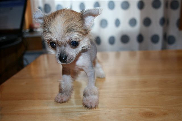 В силу специфики 2 пород — китайской хохлатки и чиха, у них всегда выходят не оч. привлекательные метисы. Но почему-то люди все время стремятся их продолжать скрещивать, чуть ли не сознательно (по крайней мере, натыкалась на пару таких мичуринцев в Краснодаре)…