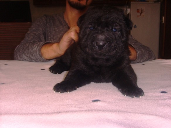 Прогнозируемый результат на мальчиках: высокие (60-70 см в холке), с хорошим костяком, с хорошим подшерстком, слегка складчатые полуовчарята. Что-то вроде такого: