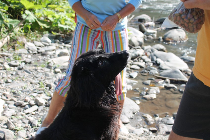 Путешествуя по России, встретили бездомную собаку, которой отрезали нижнюю челюсть. Несмотря на ужасы, пережитые от руки людей, собака приветливая и счастливая — все благодаря заботе и уходу отдыхающих и доброго человека, который свозил собаку к ветеринару, дает ей лекарства и еду, показал ей доброту и заботу.