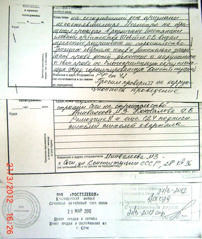 Не дожидаясь решения пятнадцатого арбитражного суда (назначен на 21.03.2012), где застройщики из третьих лиц переведены в категорию ответчиков, Раганян Ю.А. и ООО «Лотос» (г. Геленджик) активно трудятся на бывших территориях детских образовательных Центров (ул. Красноармейская, 30 и ул. Конституции СССР, 26). Вплотную к детским учреждениям сооружаются первые в городе многоуровневые автопаркинги (читай: газовые камеры).