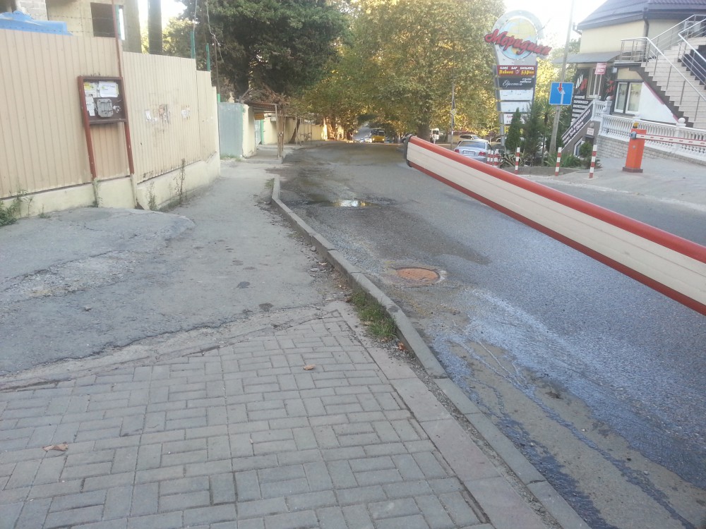 Заранее прошу прощения за фото, сделаны на бегу с телефона. Спускаясь каждый день с Туапсинской на Ареду наблюдаю вот такие ручьи, источающие неописуемый аромат, причем каждый день разной интенсивности. Это длиться уже как минимум год, раньше вода текла из дыры в асфальте, потом ее быстро, на ура заделали, ручей пропал дней так на несколько, но природа не любит пустоты и в один прекрасный день фонтан забил из люка, расположенного выше. Теперь пешеходы, пытаясь увернуться от волн зловонной жижи из под колес мчащихся авто идут не по пешеходной дорожке, а изображая человеков пауков, практически по стене бывшей военной части. Так что жители Ареды к съемкам очередной серии блокбастера готовы