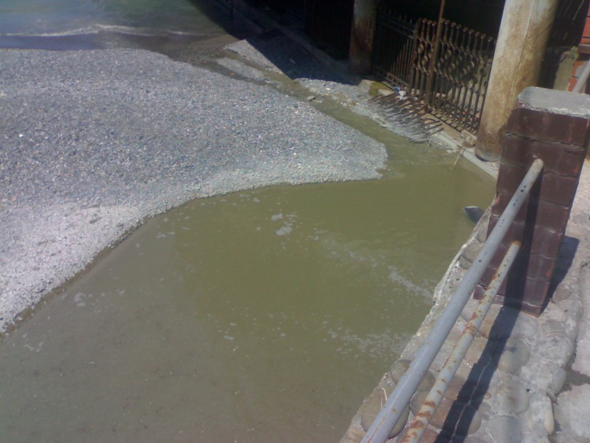 Ежедневно на пляж вытекает мутная жижа отчего на море стоит огромное мутное пятно.