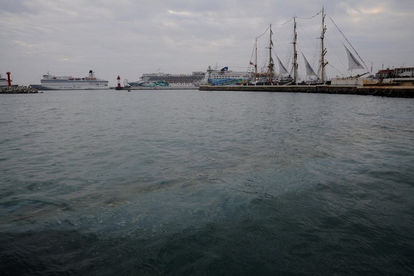 По запаху, который забивал все остальные на „Маяке“, легко определялось, что это мазут. У нового мола порта по пятну кружил катер „Алиот“, на борту которого читалась надпись „Портконтроль“: очевидно, в порту соответствующие службы об этом загрязнении моря знали. О том, что произошло, никакой информации нет, но можно предположить, что это аварийный сброс большого количества топлива с какого-то судна. Возможно, утечка произошла на одном из лайнеров, которые сейчас стоят в порту и используются в качестве плавучих отелей для гостей Олимпиады.