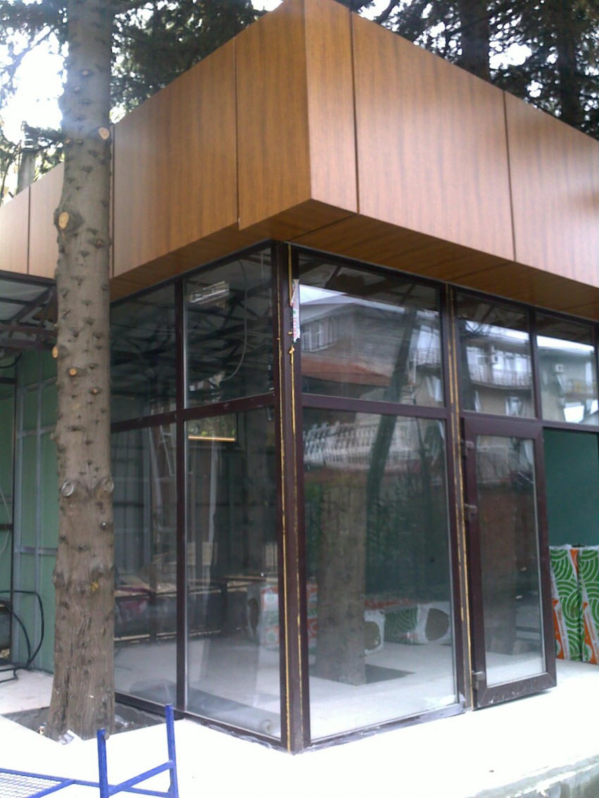 Строительство цветочных ларьков тоже сквозь прорастающие сосны и ликвидамбары