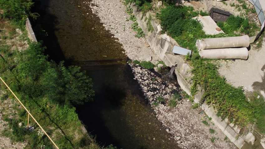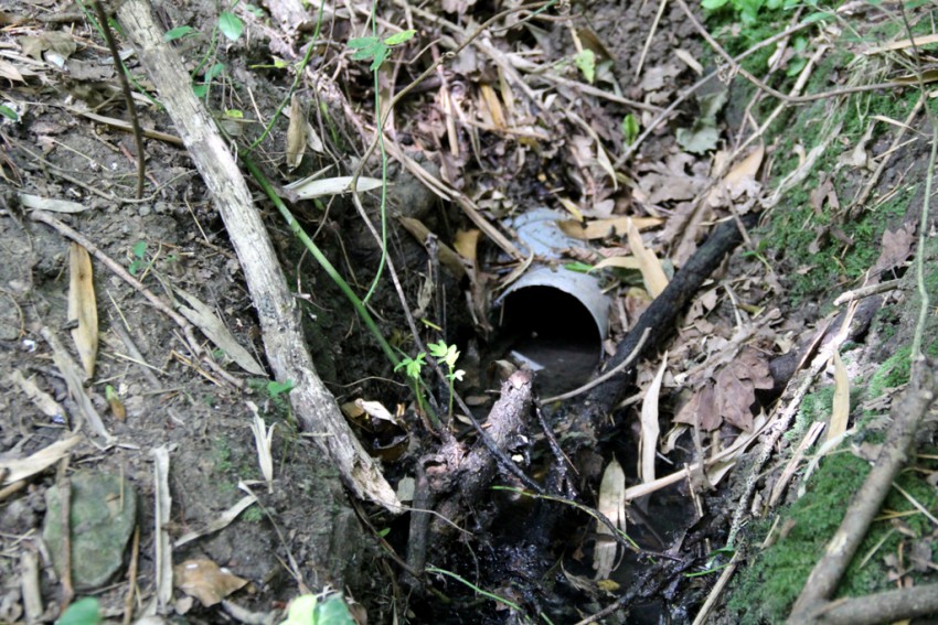 Вода непрерывно течет под хорошим напором, уходит в трубу, проложенную вверху вдоль тыльной стороны Магнита. Затем, в бамбуковых зарослях, труба заканчивается.