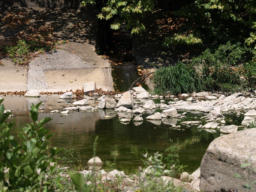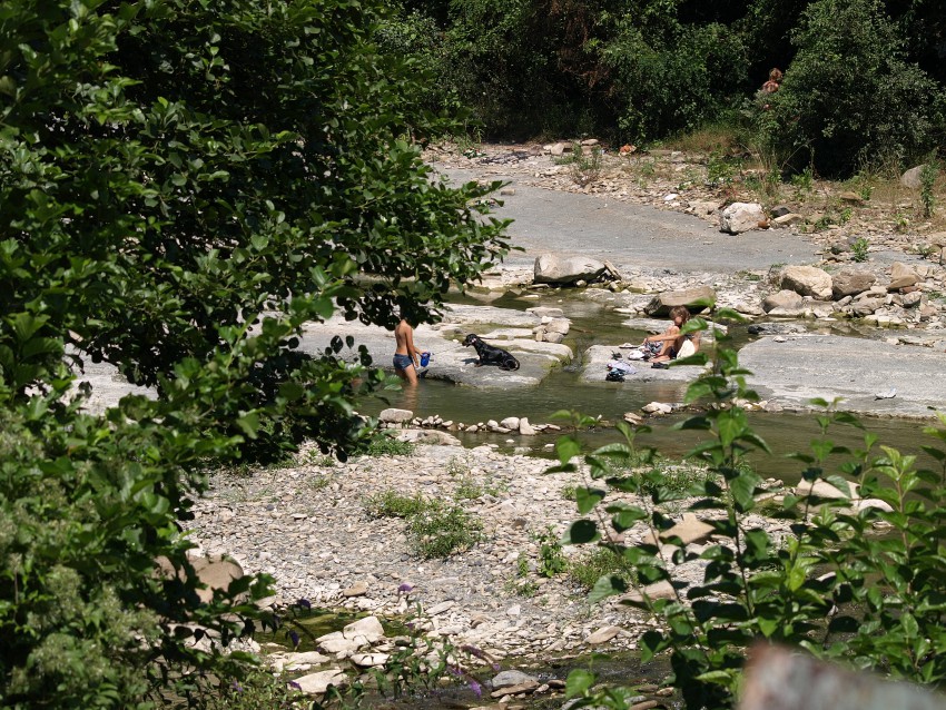 Есть на Мацесте весьма популярный пляжик — нето, чтоб очень хороший, просто находится напротив сразу не скольких пятиэтажек, рядом со стадионом. Всегда удивляла беспечность взрослых и их же долготерпеливость: вот что происходит с речкой буквально в ста метрах, вверх по течению: