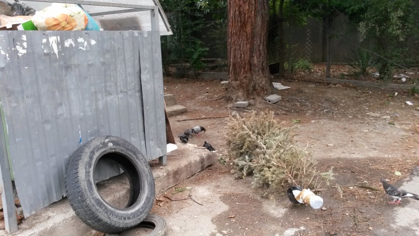 Ну и гвоздь программы — засохшая новогодняя ёлка, которую вынесли в августе. Я думала, что это карикатурный и анекдотичный сюжет. Ан нет, и в жизни бывает :)