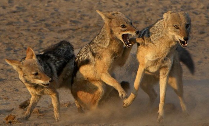 А шакалы, питавшиеся на мусорных полигонах, перешли на тропу людей буквально, некоторые полигоны ТБО закрыли и шакалы бегают по пикниковым полянам, поселкам и даже спускаются рядом с Дендрарием из леса в мкр-не Фабрициуса от гостиницы «Старт» до самого Дерева Дружбы. По вечерам прыгают в мусорные баки, спокойно пробегают мимо крупных собак из частного сектора.
