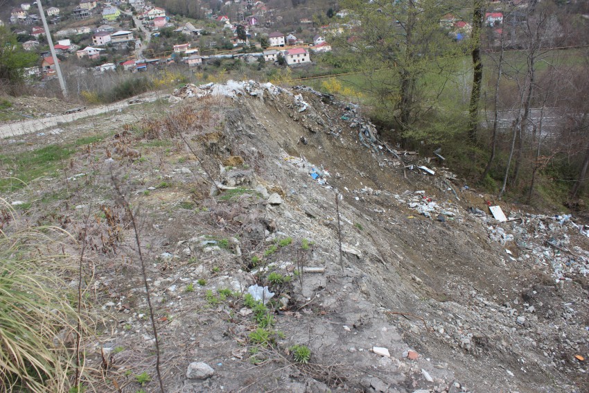 Остановила машину, вышла — посмотрела, реально — оползень, состоящий из грунта, отвалов и бытовых отходов… и всё ползёт к федеральной трассе М47 Джубга-Сочи Обход г. Сочи примерно на 7км… Я буду не я, поехала посмотреть на вид сверху…