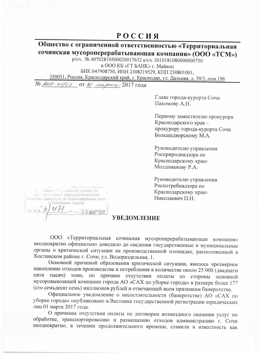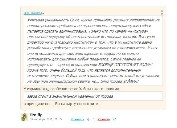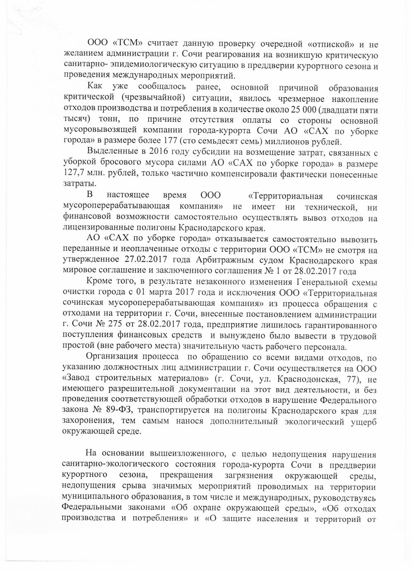 если каждый кто здесь сидит и кому небезразлична ситуация с отходами и именно зловонными запахами, распространения инфекций и вредных веществ в ещё пока курортном городе Сочи, найдет 15-20 минут и напишет хотя бы одно заявление в надзорные органы тогда действительно что то изменится, а здесь мы уже можем собраться и посоветоваться что же еще можно сделать чтобы изменить ситуацию к лучшему