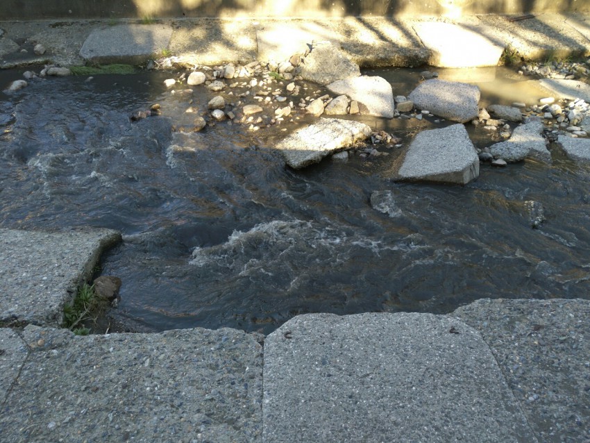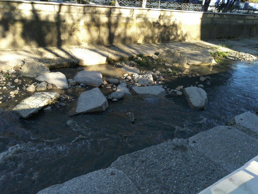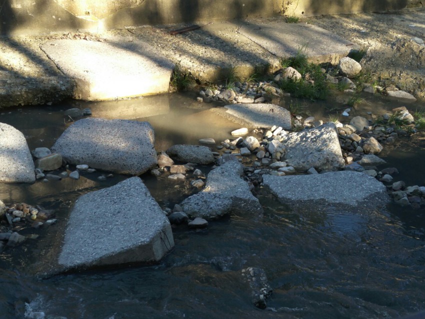 Сегодня 26 апреля 2017 г. В реку Псахе, та, что на Мамайке, произведен выброс канализации. В течении всего дня вода в реке становилась все чернее и ароматнее, прямым потоком двигаясь в море. На улице Полтавской невозможно дышать, стоит невыносимая вонь от запаха горной реки.