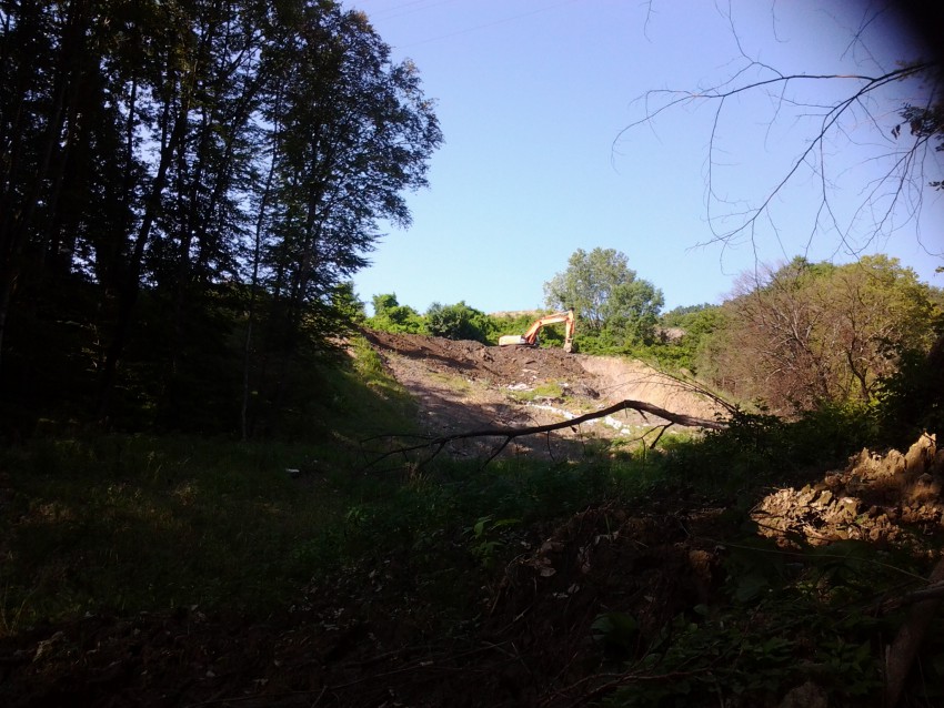 Сегодня позвонили жители близлежащих домов и сообщили, что на оползне работает техника. Поехал и точно, сыпят грунт на ползучий оползень.