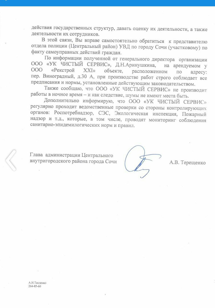 Обращения в Администрацию и прокуратуру города Сочи не дают никакого результата. Происходит полное попустительство со стороны власти города.