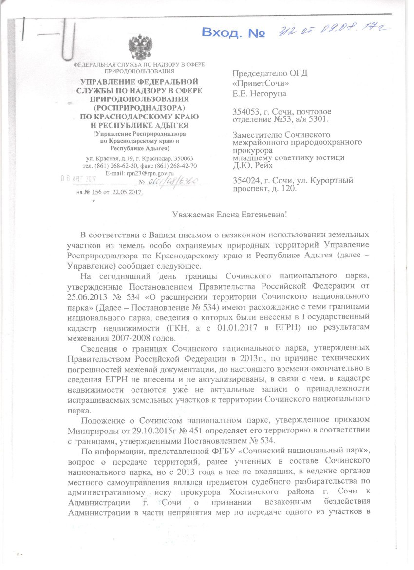 Передали все письма полученные от Сочинской межрайонной природоохранной прокуратуры, Росприроднадзора Краснодарского края и Министерства природных ресурсов РФ. Последний ответ просто превзошёл наши самые смелые предположения в части беспомощности (или нежелания?) государственных органов разбираться и наводить порядок в Сочинском Национальном парке…