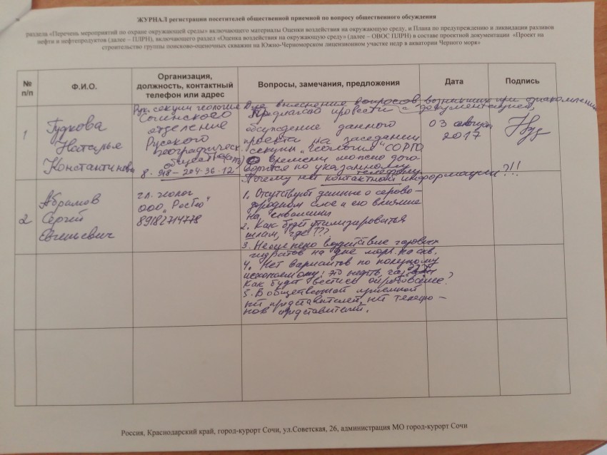 Для тех кто не помнит, краткая история вопроса. 29.07.17г у нас на сайте было опубликовано объявление о проведении общественных обсуждений по намечаемой хозяйственной деятельности ПАО «НК Роснефть» — Общественные обсуждения: нужна ли Сочи нефть?. Не сразу, но население города, постепенно отойдя от шока и рассмотрев перспективы по добыче нефти на шельфе Чёрного моря предприняло ряд шагов, таких как: митинг, встреча в СО РГО с представителями Роснефти,, ПЕТИЦИЯ и открытое письмо В.И. Кондратьеву.