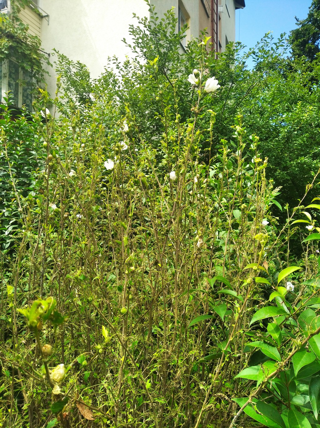 Очередная напасть! Прекрасным декоративным кустам и деревьям гибискус сирийский в Сочи угрожают уничтожением какие-то гусеницы листожерки. По всему городу вижу полностью объеденные кусты, которые вряд ли смогут восстановиться. Считаю необходимым немедленные действия организациям зеленого хозяйства да и по возможности жителям Сочи. Иначе мы лишимся еще одного красиво цветущего растения.