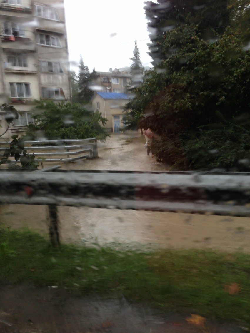 Река Лоо — это ужас какой-то! Вышла из берегов. На Керченской белая «семерка» висит в заборе. Весь поселок в ветках, корягах и мусоре.